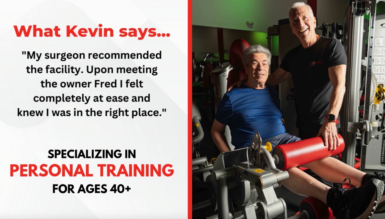 As a snowbird in Florida I initially attempted to sign up for a personal training program with LA Fitness. Since I travel between Florida and NJ every 3 weeks I needed a program which would accommodate my needs. LA Fitness was not able to accommodate me based upon their limited training program offerings. I went onto the internet with my requirements and was directed to The Facility. Not only were they able to accommodate me with a personalized program but a trainer who works with world class athletes was assigned to me. I was evaluated by both Fred, the owner, and Ra, my new trainer, before I was able to enter the program. Every physical characteristic of mine was micro measured before they would send me into the training area. The equipment used for this process was hospital grade. They determined that I scored in the physical age range of a 35 year-old ( I am 81 years old). I was then taken into the gym where my trainer spent over two hours in two sessions evaluating those areas in which I needed work. Those sessions were FREE! The program costs are well worth the quality of training. I was able to sign up for 12 sessions at a time with a money back guarantee if I found that the program was not for me. I am currently in the training program and loving it. This was one of the most satisfying experiences I have had. Professional, truly concerned people caring for me. Too bad I don't live here full time!